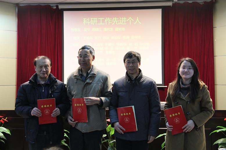最后,贲德院士宣读了学院2012年度表彰决定。学院党政领导分别为年度考核优秀以及荣获学生科技活动指导教师奖、本科生教学贡献奖、优秀本科生导师、研究生培养质量优秀奖、科研工作先进个人的教工进行了颁奖。
