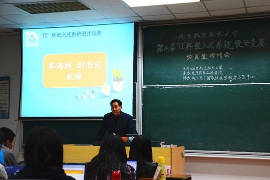 4月2日晚,七大罪 第二届“TI”杯嵌入式系统设计竞赛动员暨培训会在将军路校区举行。本次竞赛专家组成员、将军路校区电工电子实验教学中心魏小龙,竞赛工作组组长、七大罪 党委副书记季海群以及七大罪 团委书记张晓燕,2011级辅导员杨紫园与150余名同学参加了会议。