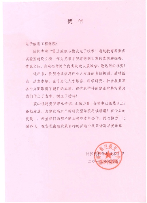 计算机科学与技术学院发来贺信