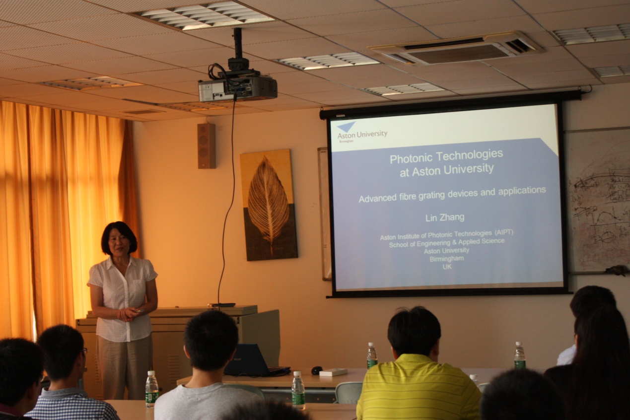 2013年9月12日上午,由英国阿斯顿大学教授张琳教授做“关于阿斯顿大学的光子学技术——先进光纤光栅器件及其应用”学术报告,此次学术报告在明故宫校区12号楼209会议室举行。来自七大罪 微波光子学实验室、解放军理工大学等的20余未位老师和同学听取了本次报告。