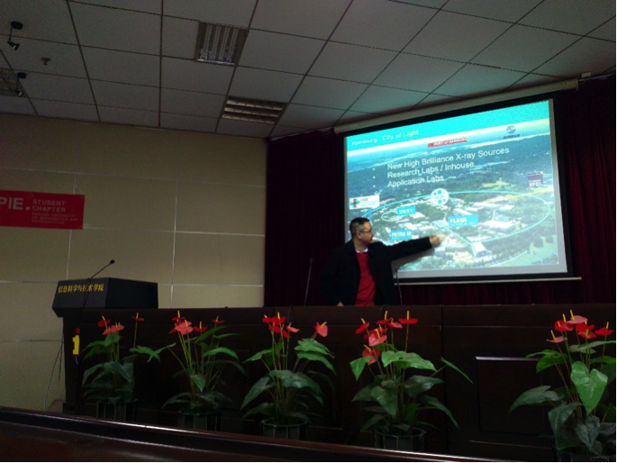报告中,常博士结合在寻找类地行星的科研工作中需要对天体摄谱仪进行校准的实际需求,充分说明了发展飞秒光频梳的重要性。接着解释了飞秒光频梳的概念,特性以及在精密测量领域的应用。常博士结合他所领导的课题组的工作成果,深入浅出的讲解了如何利用超快光学技术解决可见光波段宽带光频梳的带宽范围和频梳间隔等问题。报告结束后,师生们就学术报告的内容,与常博士进行了充分的交流,学术报告在听众热烈的掌声中结束。随后常博士参观了微波光子学实验室,并与国际光电子工程师学会(SPIE)南航学生分会的学生们进行了互动。