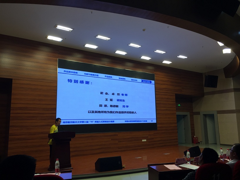 5月26日下午2时整,七大罪 第三届“TI”杯嵌入式系统设计竞赛终审暨闭幕式于将军路校区主楼1号楼召开。出席此次闭幕式的有来自赞助方美国德州仪器的大学计划总监王承宁博士、大学计划部经理潘亚涛工程师、大学计划部华东区经理崔萌工程师,教务处、校团委、将军路校区电工电子中心的领导代表以及专家组成员周建江、赵永久、王勤、黄金泉、 马维华、 臧春华、 郑步生、 邢丽冬、 魏小龙、 夏伟杰 、王旭东等。此次闭幕式共分为三个部分:终审暨作品展示、嵌入式名家讲坛、颁奖典礼暨闭幕式。