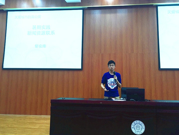 随后,长期立项团队“关爱城市的蒲公英”实践团分享了联络媒体、扩大宣传的经验,以身说法教会同学们如何在宣传过程中充分利用各种媒介;“探讨苗族文化”优秀团队针对团队本身遇到洪流阻挡、语言障碍等问题向同学们传授解决实际问题的经验。 最后,学院五大组织实践团队队长逐一上台发布了今年各组织的实践活动主题、策划和队员要求,“院友零距离”、“寻访历史痕迹,还原无冕英雄”等7个实践团也为同学们提供了丰富多样的实践项目选择。