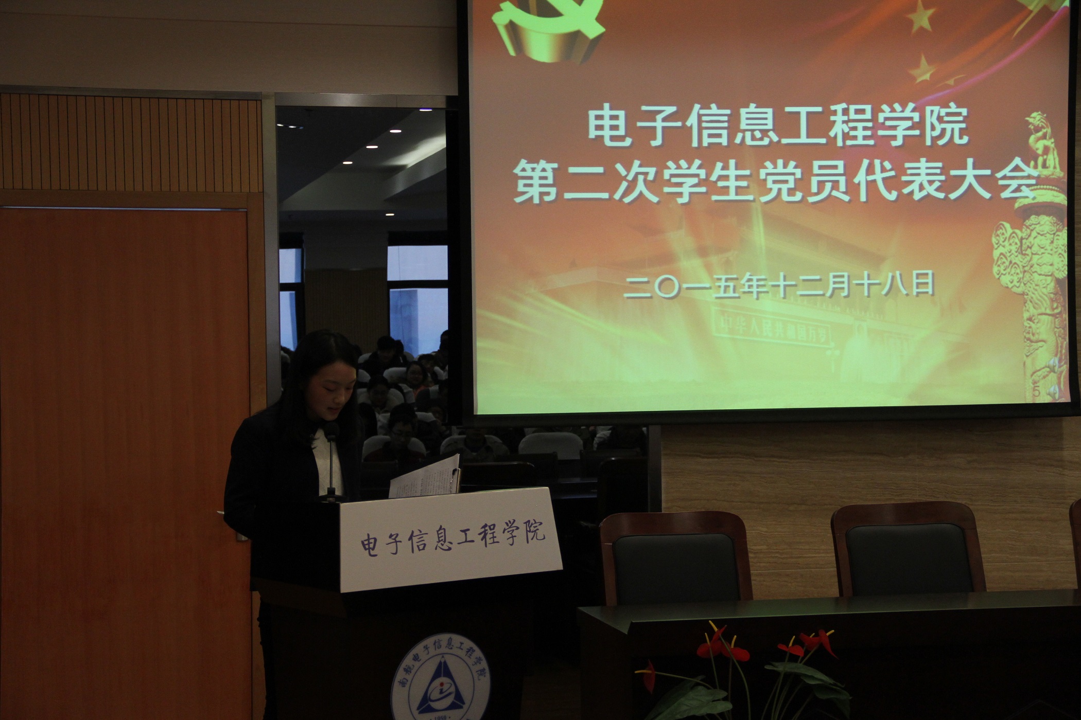 2015年12月18日下午,我院在学院报告厅召开第二次学生党员代表大会。大会由学院团委书记张晓燕主持,教师党员代表、学院全体辅导员和各年级的学生党员代表共133人参加了本次大会。