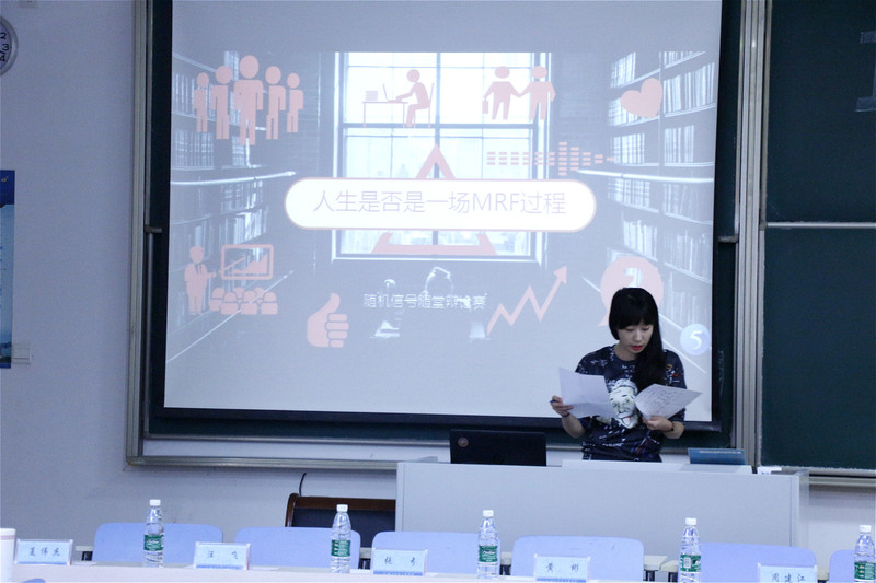 比赛如约而至,15:00同学们便开始布置赛场,往常的教室被注入新的活力并蕴含着丝丝人文气息。相对设置的座位布局,鲜红的辩论赛横幅,整齐的“ I CAN I UP”宣言,都让大家嗅到了紧张的气息。伴随着一声木鱼敲击,战斗的烽火正式点燃,比赛分为立论、攻辩、自由辩论和总结陈词几个环节。正方认为“人生是一场马尔可夫随机过程”,即未来的人生与过去的人生相互独立、未来不受过去所影响,通过锦鲤信小呆的例子、我国国情与战略的制定、勾践“苦心人,天不负,卧薪尝胆,三千越甲可吞吴”等大量实例予以佐证。反方则认为“人生不是一场马尔可夫随机过程”,即未来的人生与过去息息相关,从身边的实际话题“简历对找工作的影响”出发引起共鸣,并以“学习与职业选择、下一代教育、人生的顿悟”等方面为话题展开剖析,表达“不管过去的影响权重大或小,人生都是一个加权求和的结果”