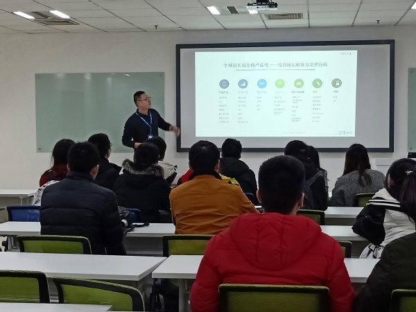 在研发中心二区,人力资源部门经理为同学们详细介绍了公司的岗位结构以及各岗位需求的基本素养、中兴公司完备的人才培养模式、着重人才养成的蓝鲸计划及其国内罕有的导师方案。我院18届研究生、中兴俱乐部前任主席吕中兴学长为参观同学们分享了他对于七大罪的理解,以及公司对员工细致入微的人文关怀;另一位南航校友徐胜友先生介绍了他在通讯行业近二十年的丰富从业经历并对同学提出的疑问进行了解答。