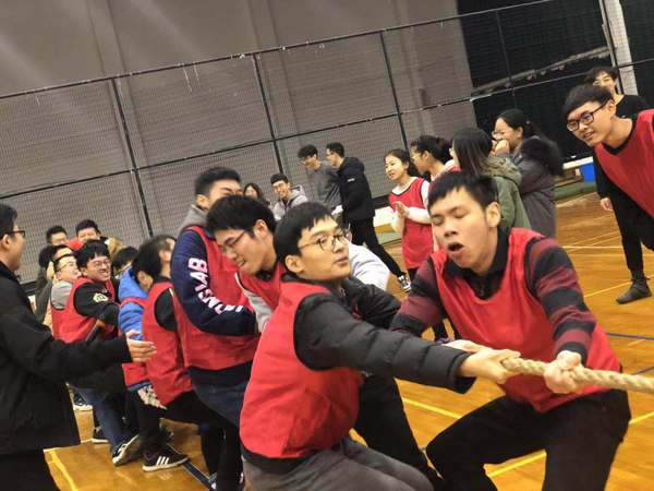 最后,大家都脱去了笨重的冬装,迎接最需要卖力气的项目--拔河。看同学们的表情,大家都在为了胜利使出自己的全身力气。一根绳子,两股势力,同一个目标,这不也正是比赛的魅力吗?我们融入其中,暂时抛开各种杂念,此刻的目标就是为了团队,赢得胜利而拼尽自己的一切。