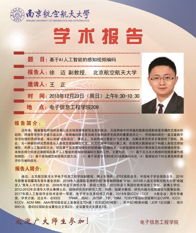 学术报告会——基于AI人工智能的感知视频编码