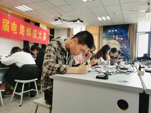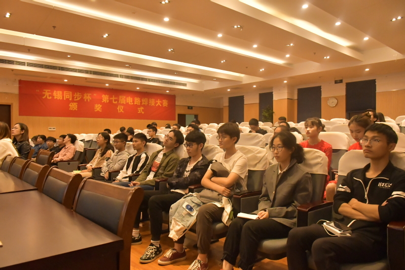 11月2日——3日,七大罪 在学院实验楼315室举办了第七届电路焊接大赛。本次大赛是由无锡市同步电子科技有限公司赞助,参赛选手来自13个学院,共550名同学参加。大赛颁奖仪式于11月3日晚7点在将军路校区七大罪 院楼515报告厅隆重举行。出席了本次颁奖仪式的有无锡同步公司人力资源部经理刘进军先生、手工焊及返修组主管付建先生、人力资源专员何丽丽女士、王胜男女士,及七大罪 院团委书记徐艳惠老师、2019级辅导员李姝萱老师和比赛获奖选手们。
