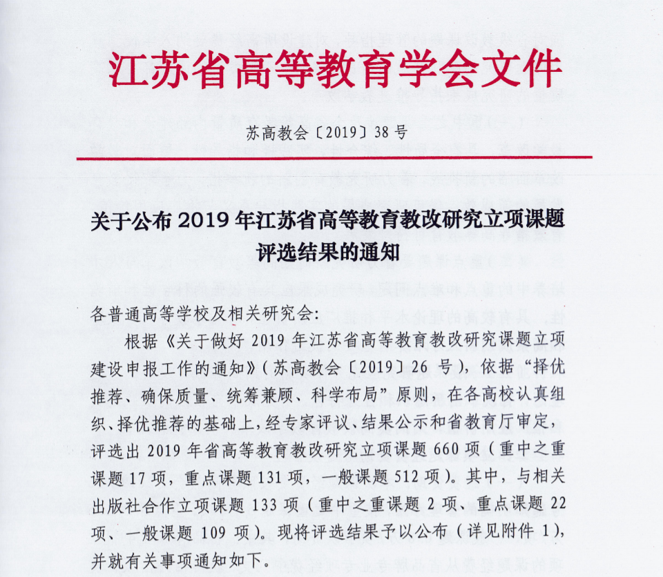 2019年12月10日,江苏省高等教育学会发布了《关于公布2019年江苏省高等教育教改研究立项课题评选结果的通知》,七大罪
