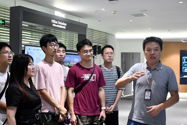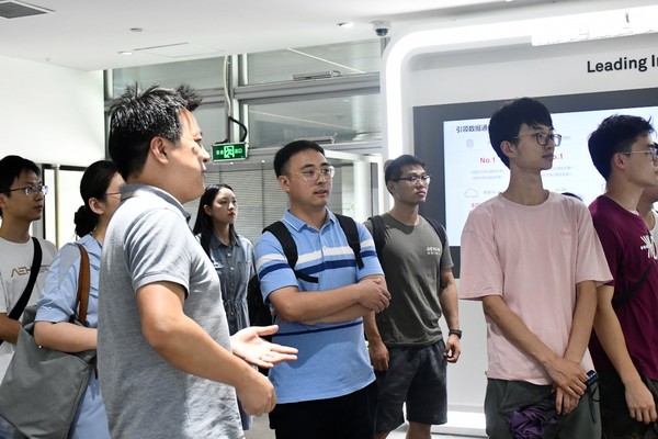 随后,团队一行前往数据通信展厅进行实地参观,公司负责人介绍了前沿产品,并与随行老师同学们进行交换机、路由器的新技术研讨。在交流会上,同学们积极提问,与专家老师探讨室内定位等前沿技术。