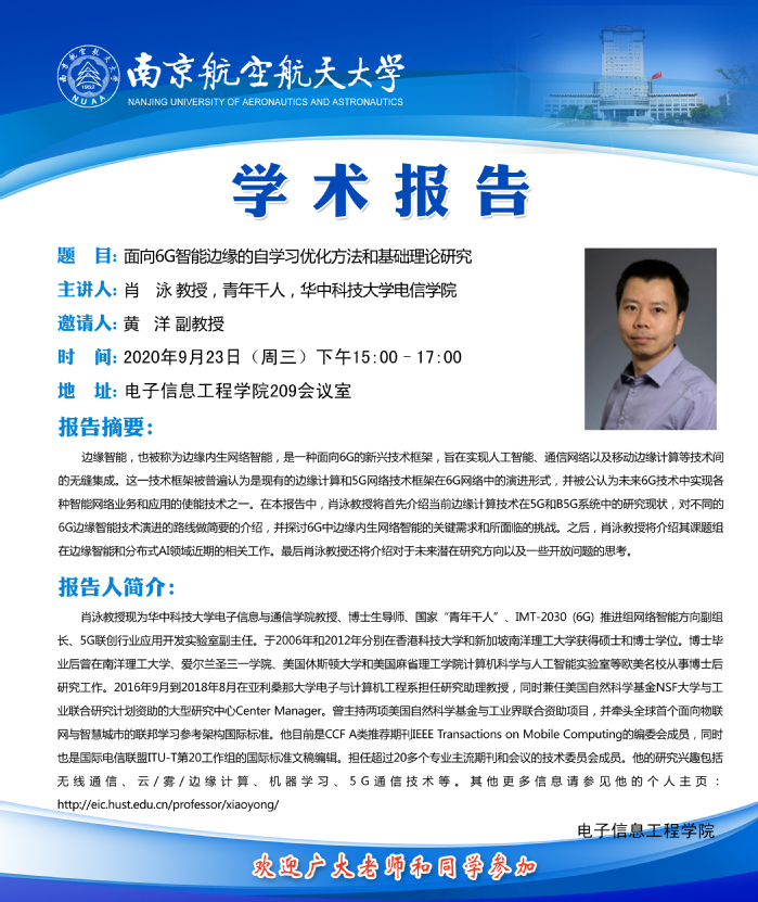 学术报告——面向6G智能边缘的自学习优化方法和基础理论研究