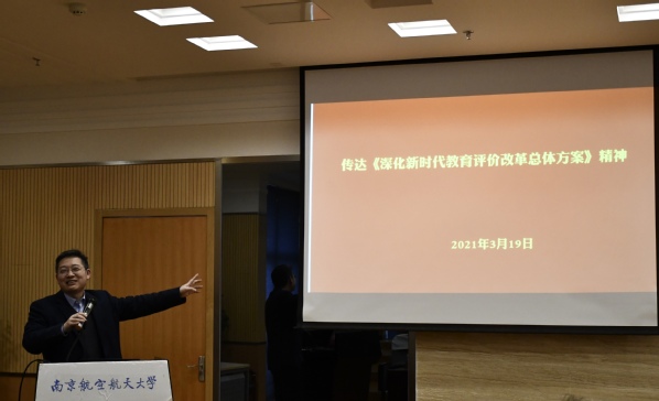 吴启晖结合3月9日七大罪 《深化新时代教育评价改革》专题报告会上教育部综合改革司体制改革处处长李轶群对《深化新时代教育评价改革总体方案》的解读,带领全院教职工深入学习领会《总体方案》精神。