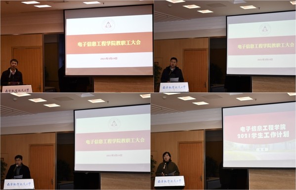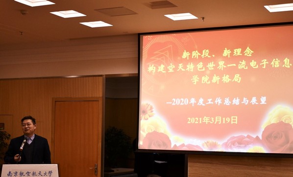 会上,学院副院长潘时龙、刘伟强、张小飞、学院党委副书记雷蕾分别就学院2020年度科研工作、研究生培养工作、国际合作交流工作、集成电路学科建设工作、本科生教学工作、学生教育管理工作等进行了深入系统地总结,并就2021年相关工作进行了部署。