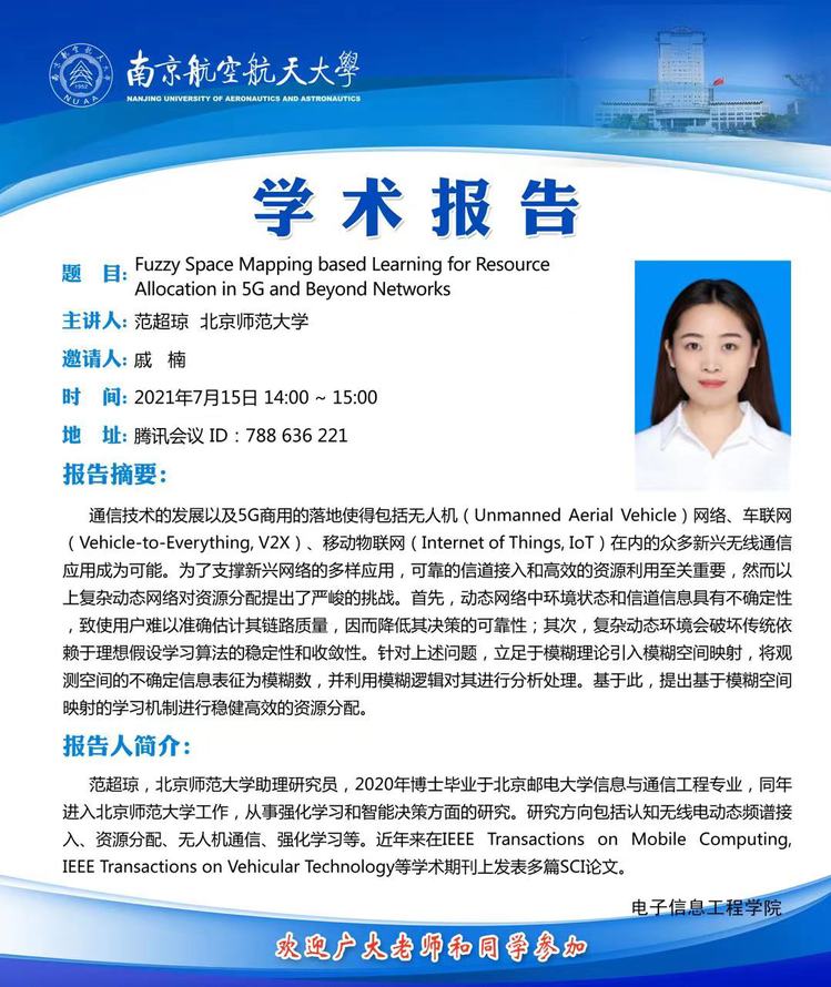 学术报告——Fuzzy Space Mapping based Learning for Resource Allocation in 5G and Beyond Networks