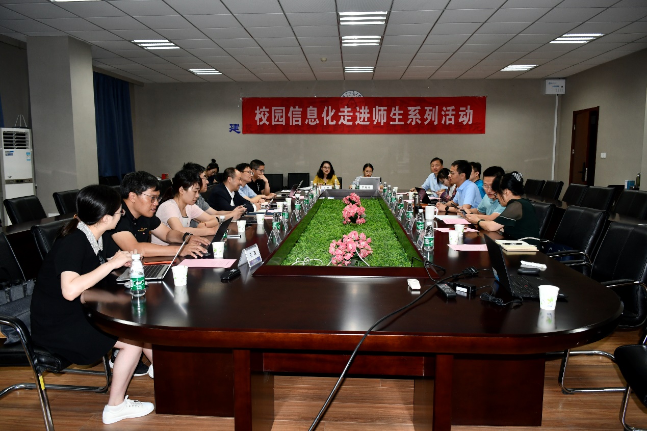 在交流座谈环节,双方就运用信息化手段提升学院教学、科研和资源管理等工作进行了交流,对学院关注的相关问题进行了现场解答和解决,对建设学院综合管理信息系统进行了深入探讨。