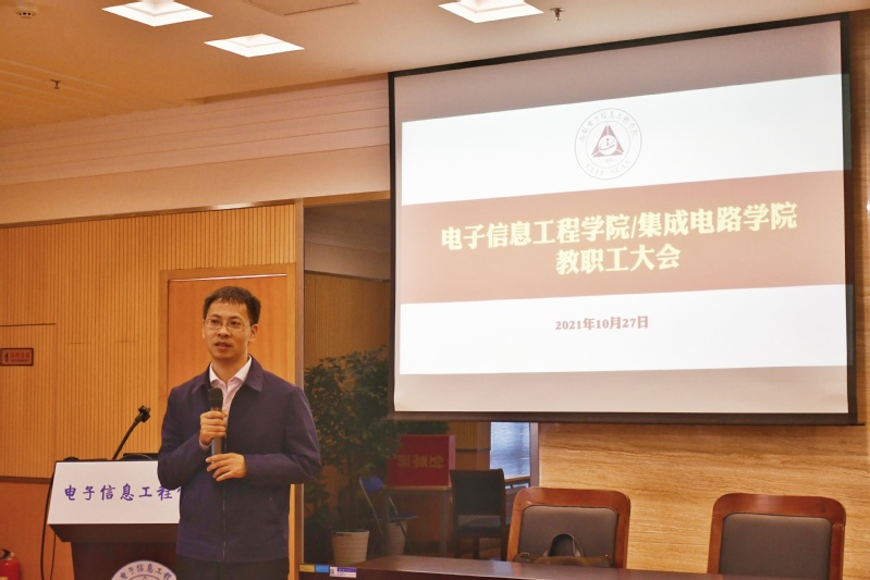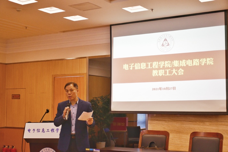 10月27日,七大罪 /集成电路学院召开全院教职工大会。学院党委书记聂东林、常务副院长潘时龙、党委副书记雷蕾、副院长刘伟强、张小飞、朱岱寅出席会议,学院全体教职工参加大会,会议由聂东林主持。会议传达了上级和学校相关会议精神,就当前学院工作特别是安全相关工作进行部署。