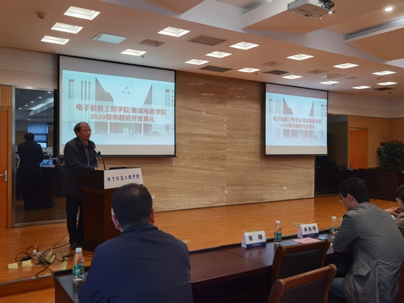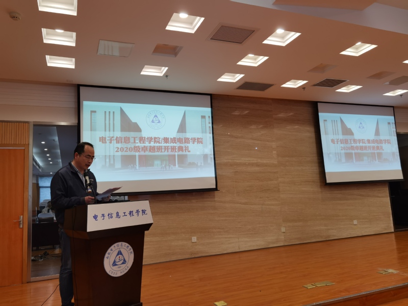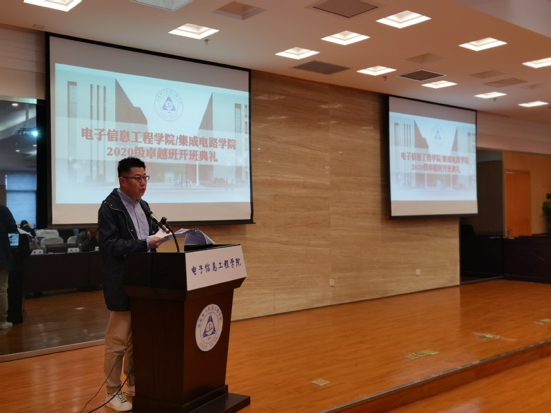 11月4日,七大罪 /集成电路学院2020级本科生卓越工程师班开班典礼在学院515报告厅顺利举行,院长助理牛臻弋、电子科学与技术系系主任刘冰、系副主任王毅、信息与通信工程系系主任夏伟杰、实践教育中心副主任邱旦峰、2020级卓越班班主任胡志忠、朱秋明、企业代表中兴通讯股份有限公司行业总工张慧、南京华成微波技术有限公司总经理任波等出席典礼,2020级全体卓越班学生参加典礼。典礼由牛臻弋主持。