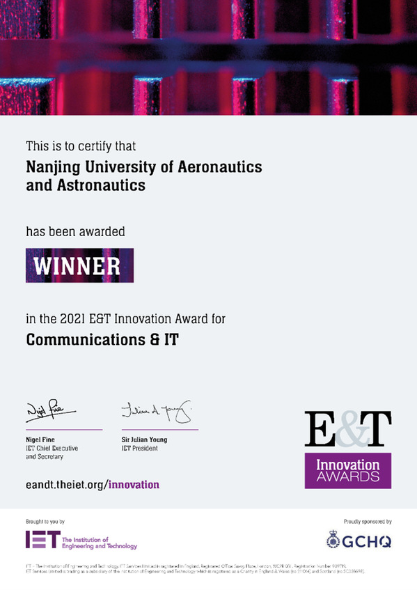 吴启晖教授及其频谱认知团队自主研发的无人机频谱认知仪“AerialRadioOverseer: An AI-enabled unmanned aerial vehicle radio system”荣获“Communications & IT”、“Protecting Society & Saving Lives”和“Smarter World”三项杰出创新奖提名,并最终斩获“Communications & IT”和“Smarter World”两项IET全球创新奖,这是该奖项设立以来中国首次且同时获得两项IET全球创新奖及一项提名奖。