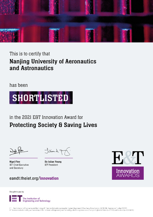 图9 该项目在“Protecting Society & Saving Lives”领域荣获IET全球创新奖提名证明