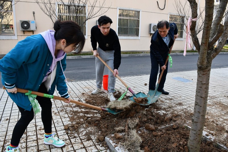 春日融融,新绿初绽,又是一年春光好,植绿、护绿正当时。为巩固“绿水青山就是金山银山”的发展理念,培育和践行节能低碳、绿色发展等环保思想。311日,学院机关党支部和硕士1903党支部在将军路校区西区樱花广场携手植树,为校园增绿添彩。