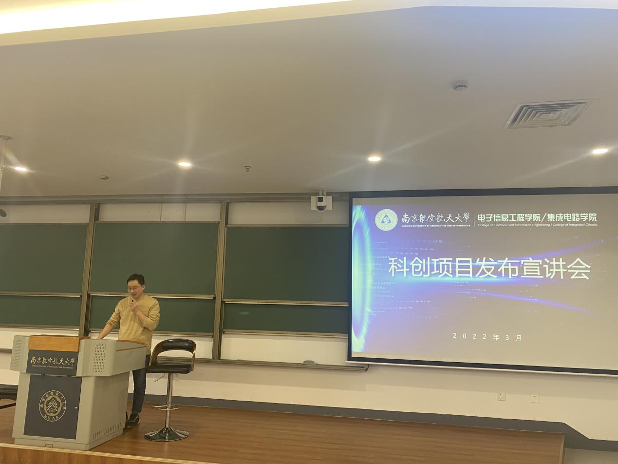 为帮助我院低年级同学更加全面深入地了解大学科创项目,进一步提高我院学生参与各大赛事的积极性,3月11日下午,我院在天目湖校区T1407教室举办了科创项目发布宣讲会,并通过线上与线下相结合的形式给同学们进行全程直播,在遵守疫情防控要求的同时尽可能的满足同学们的参与热情。