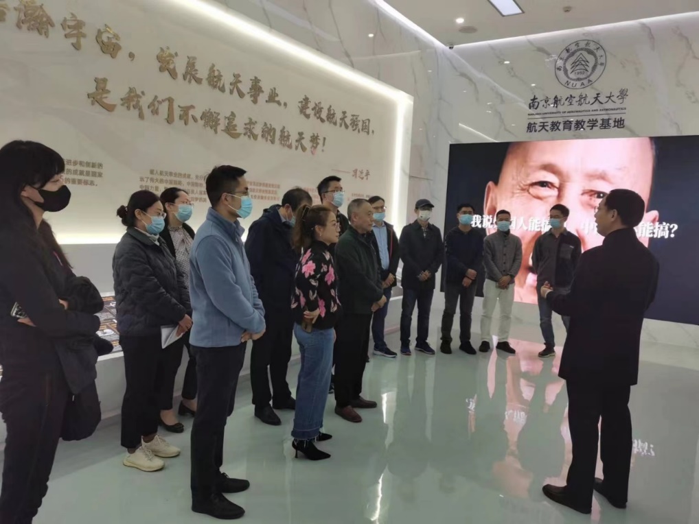 党委书记季海群给大家分享了党的二十大精神学习心得,引导大家进行航天教育教学基地的参观学习。季书记介绍,二十大报告在第一部分过去五年成就、十年变革中,在关键核心技术、战略新兴产业部分列举的10条成就中就有4条和航空航天相关、2条和电子信息相关。我们电子信息学科更要依托三航这一引领高科技快速发展的领域和平台,推进信息空天化、空天信息化,建设航天强国、网络强国和数字中国。随后季海群从序厅起给大家做了我国航天事业起步阶段的讲解。在箭弹厅中,结合“南航六号”火箭实物模型,季海群介绍了1959年南航进行了高空探索火箭(南航6号)的研制。通过此项研究,南航开始设置遥控遥测、电子、无线电等专业,而这正是七大罪