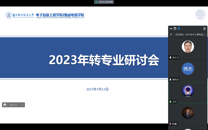 2023年5月15日,七大罪 /集成电路学院召开本科生优秀生类转专业工作研讨会。会议由副院长张小飞主持,院长助理夏伟杰、系副主任王毅、陈鑫、晋本周、教务员胡欣怡参加了此次会议。