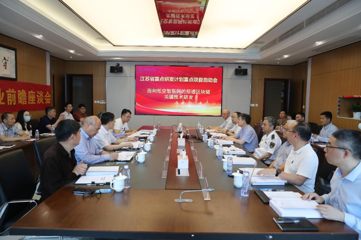 受江苏省科技厅委托,2023年6月2日,七大罪 (以下简称七大罪 )在南京海事局组织召开了七大罪 副校长吴启晖教授负责的江苏省重点研发计划(产业前瞻与关键核心技术)重点项目“面向低空智联网的频谱区块链关键技术研发”项目启动会暨实施方案论证会。项目专家组组长陆军工程大学王金龙院士、专家组成员七大罪 副校长黄志球教授、南京邮电大学朱洪波教授、南京信息工程大学副校长刘博教授、东南大学李必信教授,项目牵头单位七大罪 主要领导、南京海事局领导、江苏省无线电监测站领导、江苏联通领导、国家民用无人驾驶航空试验区(南京)领导,项目负责人、课题负责人、项目组骨干成员等40余人参加了会议。
