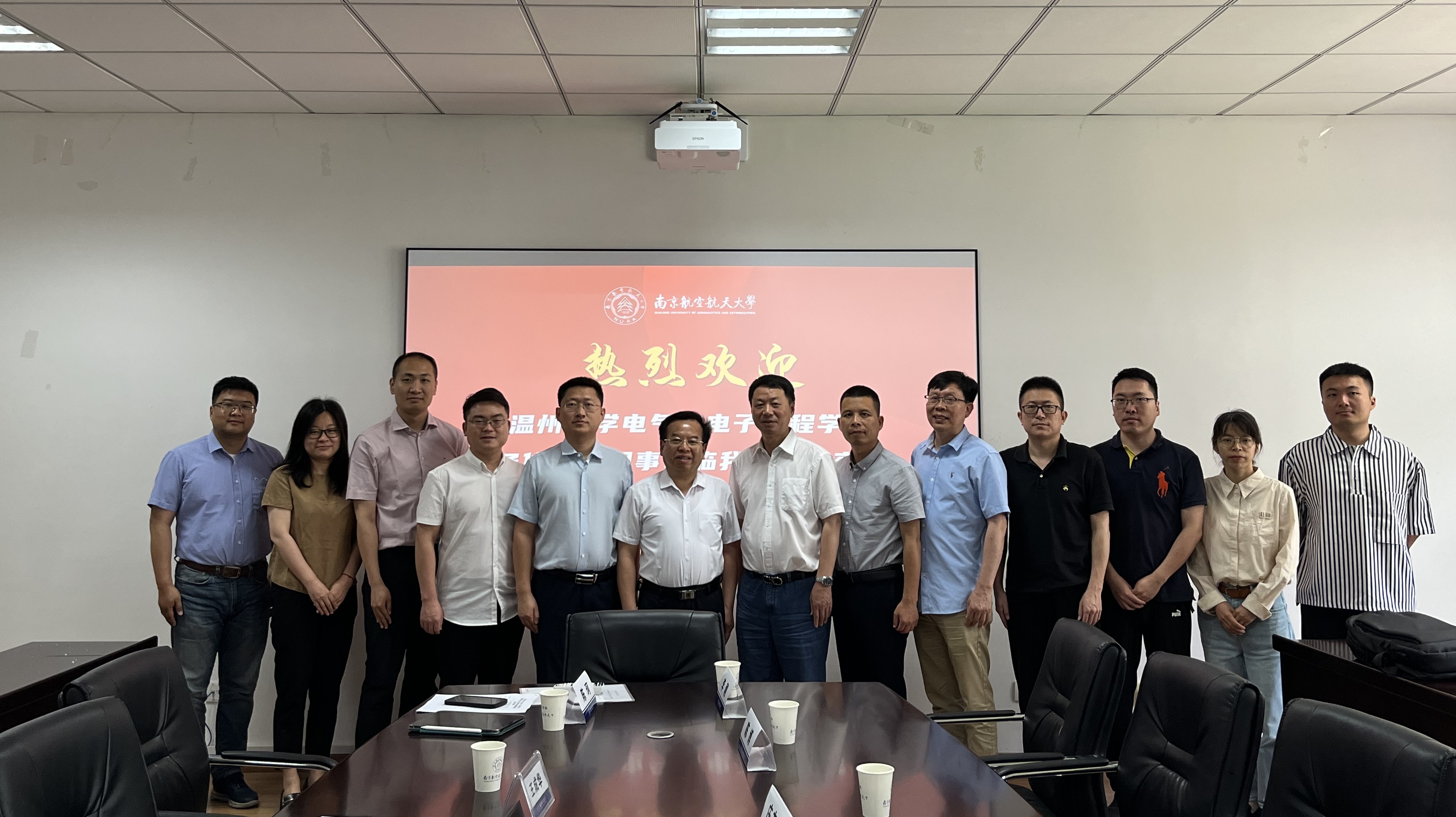 刘伟强副院长热烈欢迎汪鹏君院长一行到访,并介绍了我院的基本情况以及近年来在近年来在集成电路学科建设和人才培养等方面取得的进展和成果。汪鹏君院长则介绍了温州大学电气与电子工程学院在师资队伍、科研平台、学科体系和集成电路专业建设等方面的情况。