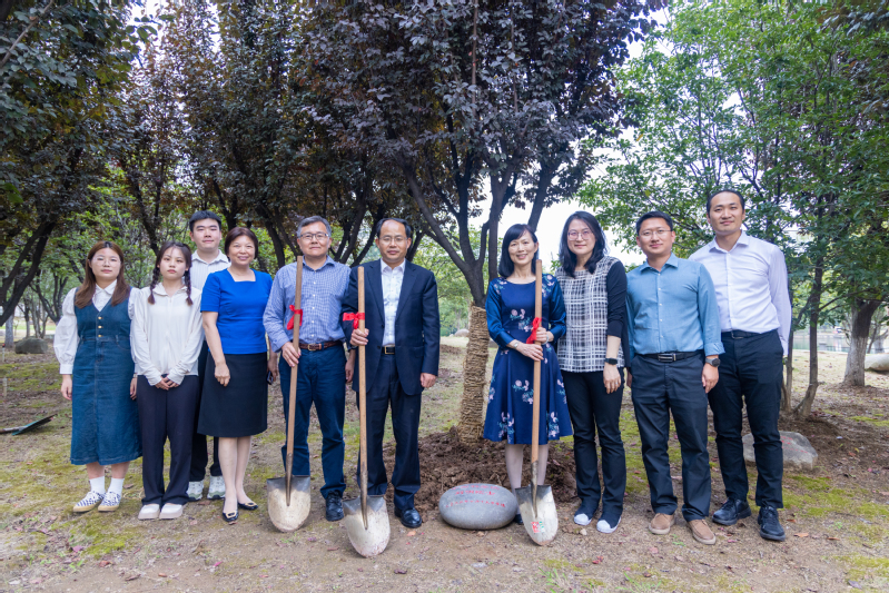报告会前,刘明院士与集成电路学院教师代表进行座谈,就集成电路学科建设情况进行指导。报告会后,刘明院士与师生代表共同在砚湖边院士林植树。