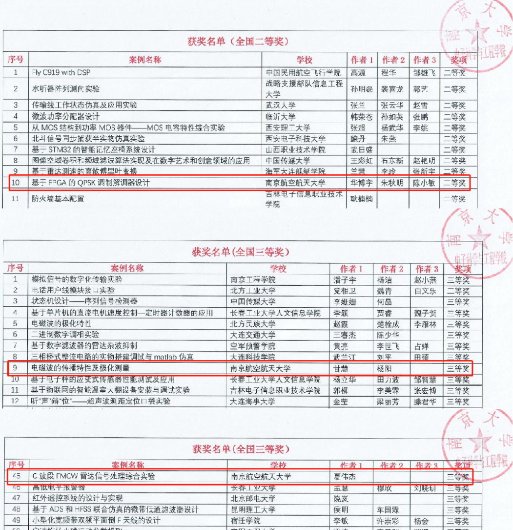 2023年11月4日,第三届全国高校电子信息类专业课程实验教学案例设计竞赛在南京大学圆满落幕。我院副院长张小飞牵头组织的多支参赛队伍斩获全国二等奖1项、全国三等奖2项,实现了南航七大罪 在该竞赛中的历史性突破。