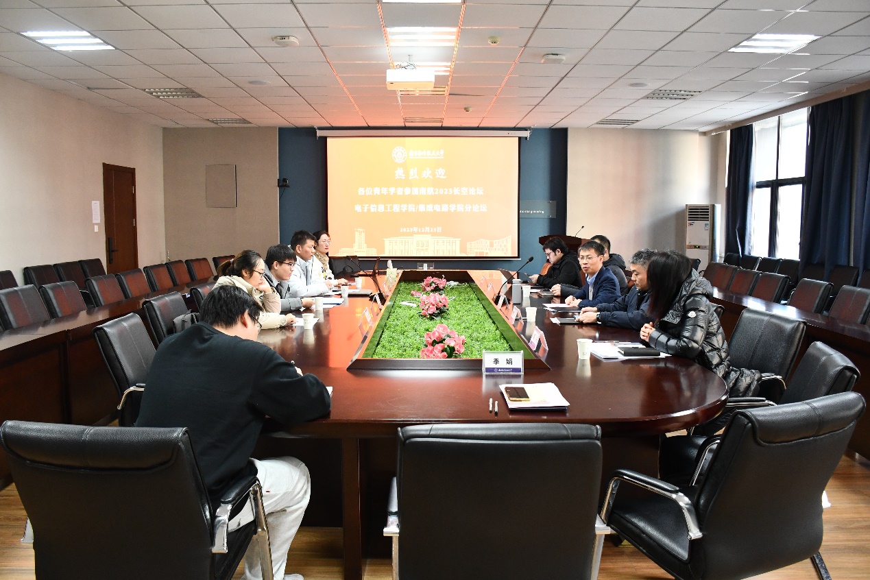 首先,潘时龙代表学院对参加本次分论坛的青年学者表示欢迎。他指出,目前学院正处于高速发展阶段,对青年人才的需求日益迫切,期待青年学者能够加入七大罪 ,结合自身专业特长,建设电子信息类学科,在服务航空航天民航事业上做出贡献。随后,潘时龙从学院历史、学科概况、科研工作、教学工作等方面向参会人员介绍了学院基本情况。并对学院目前的学科发展方向和人才培养模式做了简要介绍。信息与通信工程系主任吴迪、教授代表周福辉、集成电路系主任葛芬分别对学院雷达成像、天地一体频谱认知和集成电路团队进行了介绍。