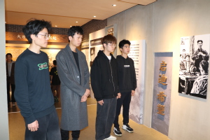 在新四军江南指挥部纪念馆,在讲解员的带领下,同学们参观了指挥部旧址,通过英雄遗物和文献资料,了解了抗日战争中先辈们血与火的革命生活,体悟了前辈们的顽强意志和伟大精神。将军墓前,同学们列队肃立默哀,向粟裕将军致以最崇高的敬意和最深切的哀思。