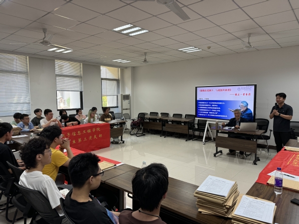 党课以“凝聚在党旗下,与祖国共奋进”为主题,从学院杰出院友、“嫦娥三号”探测器系统总设计师孙泽洲的光荣事迹引入,回顾了我国航空航天事业的发展与成就,围绕党的追梦之路向毕业生党员们讲述了中国梦与中国魂的深刻内涵。同时,丁荣茂结合自身党纪学习教育的深刻体会,叮嘱毕业生党员们要牢记初心使命,鼓励同学们毕业后仍要加强学习,勇于探索,在电子信息等国家战略领域发挥才干、做出贡献。