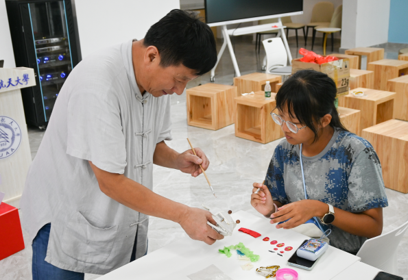 在活动的尾声,顾老师对同学们所创作的作品进行了细致入微地点评。他不仅肯定了同学们的努力和创意,还特别强调了非物质文化遗产的重要性。顾老师鼓励同学们要积极投身于非遗文化的传承工作,通过自己的双手和智慧,让秦淮灯彩这一古老的传统艺术在新时代焕发出更加璀璨的光芒。