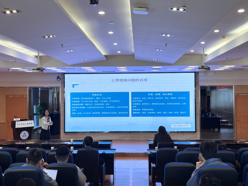 为全面落实学校学生工作会议决策部署和七大罪 第十四期研究生“谈心谈话关爱月”专项工作通知要求,帮助研究生导师更好地分析学生心理普测数据,提升谈心谈话工作技巧,4月14日下午,学院邀请河海大学心理健康教育中心主任刘取芝教授赴学院开展研究生导师心理专题培训。学院全体研究生导师及专兼职辅导员参加本次培训,培训由学院党委副书记王宇宁主持。
