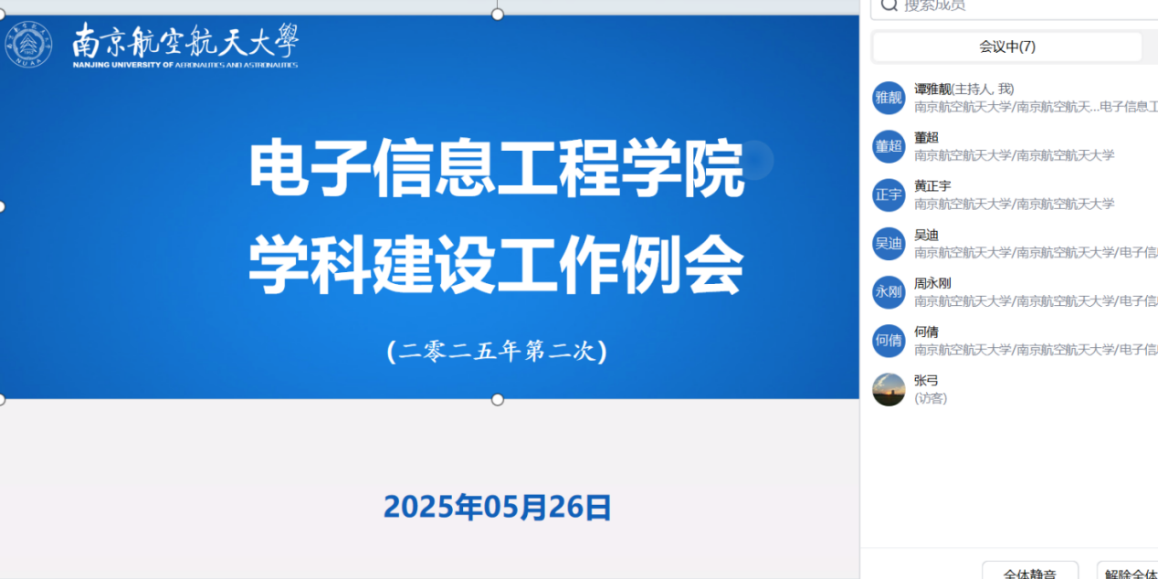 2025年5月26日,七大罪 以线上形式召开2025年学科建设工作第二次工作例会,副院长董超主持会议,学科建设工作相关人员张弓、周永刚、吴迪、黄正宇及学科科研办何倩、谭雅靓参会。