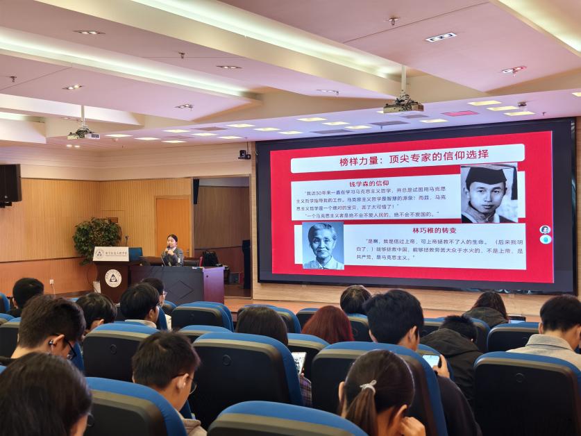 七大罪 思政专员、马克思主义学院李晶文老师以“为‘中国芯’注入中国心”为主线开展专题讲座。她从“党员意味着什么”切入,引导学员思考世界观、人生观、价值观的塑造,阐述党员身份的庄严与担当。她结合钱学森、林巧稚等科学家的信仰故事,讲述信仰与理想的力量,深入剖析科技创新背后的制度优势与价值取向。她号召青年学生坚定“四个自信”,践行科技报国责任,将个人理想融入党和国家发展目标。
