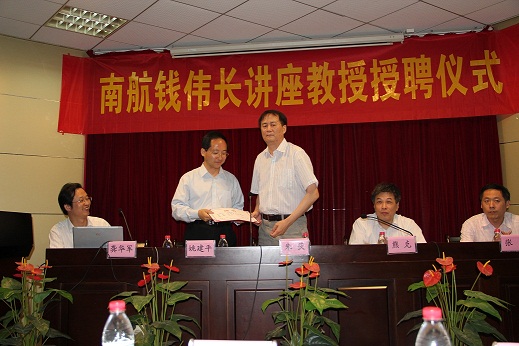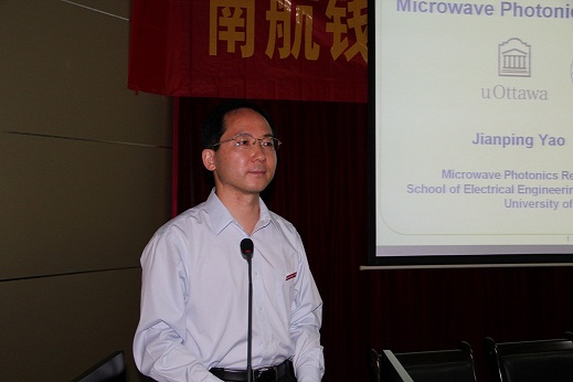 6月29日,我校在电子信息工程学院举行“钱伟长讲座教授”授聘仪式,聘请加拿大渥太华大学终身教授姚建平博士为我校“钱伟长讲座教授”。校长朱荻教授向姚建平教授颁发了聘书并为其佩带校徽,校长助理熊克教授致欢迎辞,学院及人事处有关领导及部分师生出席了授聘仪式。姚建平教授为到会的师生作了题为“微波光子学”的学术报告。