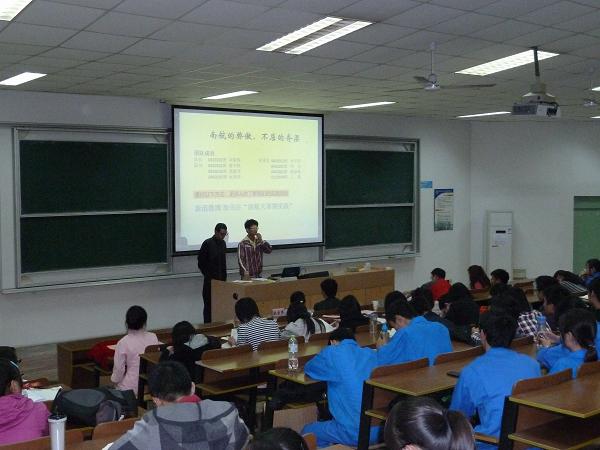 2011年10月19日下午,电子信息工程学院“践行我心,律动青春” 2011年暑期社会实践成果报告会在将军路校区4102教室隆重举行。校团委副书记宋凯、学院党委副书记季海群、学院团委书记及各年级辅导员老师出席报告会。此次报告会依托学院“教授接待日”,特邀教授代表吴一全、张小飞亲临报告会现场,指导大学生暑期社会实践工作。