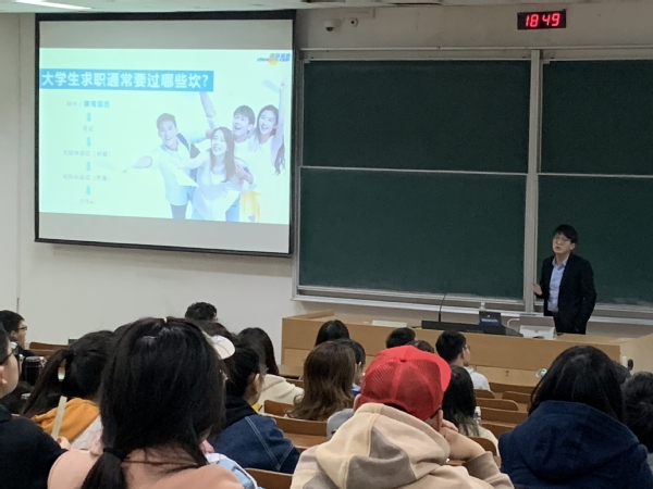 此次培训邀请到智联招聘校园职业指导金牌讲师徐升开展题为“瞬间打动HR—你的简历应该这样写”专题求“职”指导讲座,现场学生反应热烈。