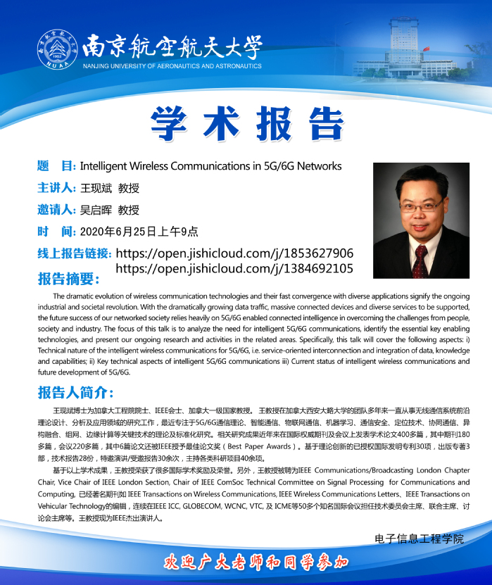 学术报告会——Intelligent Wireless Communications in 5G/6G Networks