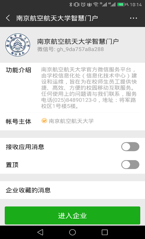 一、微信关注“南京航空航天大学智慧门户”企业号。
