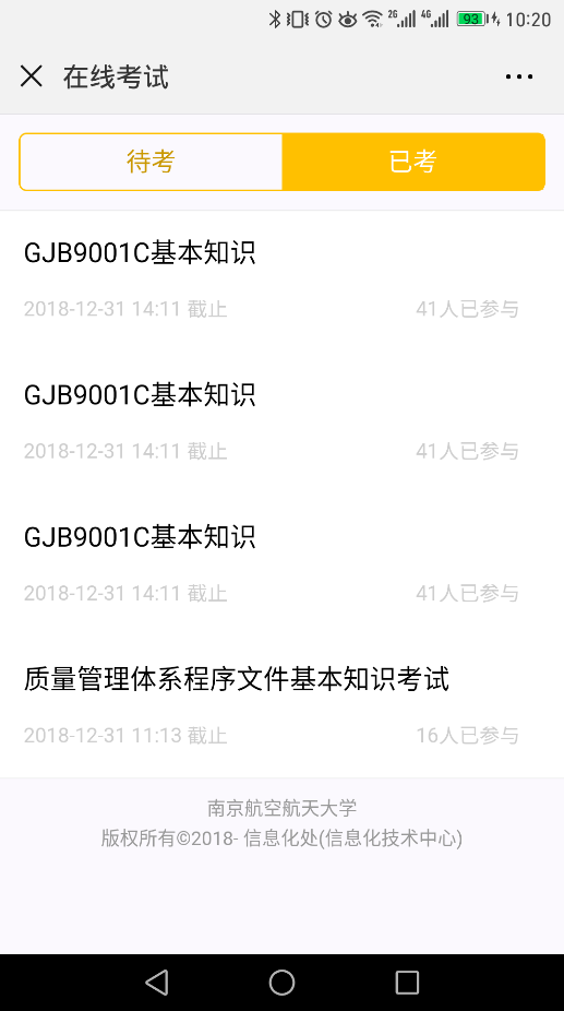 三、点击“在线考试”,进入“待考”区,点击“GJB9001基本知识测试”。