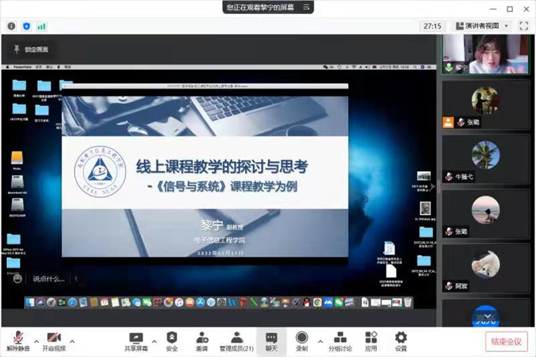根据学校2022年春季学期开学阶段教学工作安排,电子信息工程学院/集成电路学院积极开展线上教学准备工作,对前两周需要进行线上教学的课程进行了梳理。同时,为了提高教学质量及学生学习成效,学院于开学前组织了线上教学交流会,邀请黎宁老师和孔祥鲲老师分享了自己线上教学经验及体会。