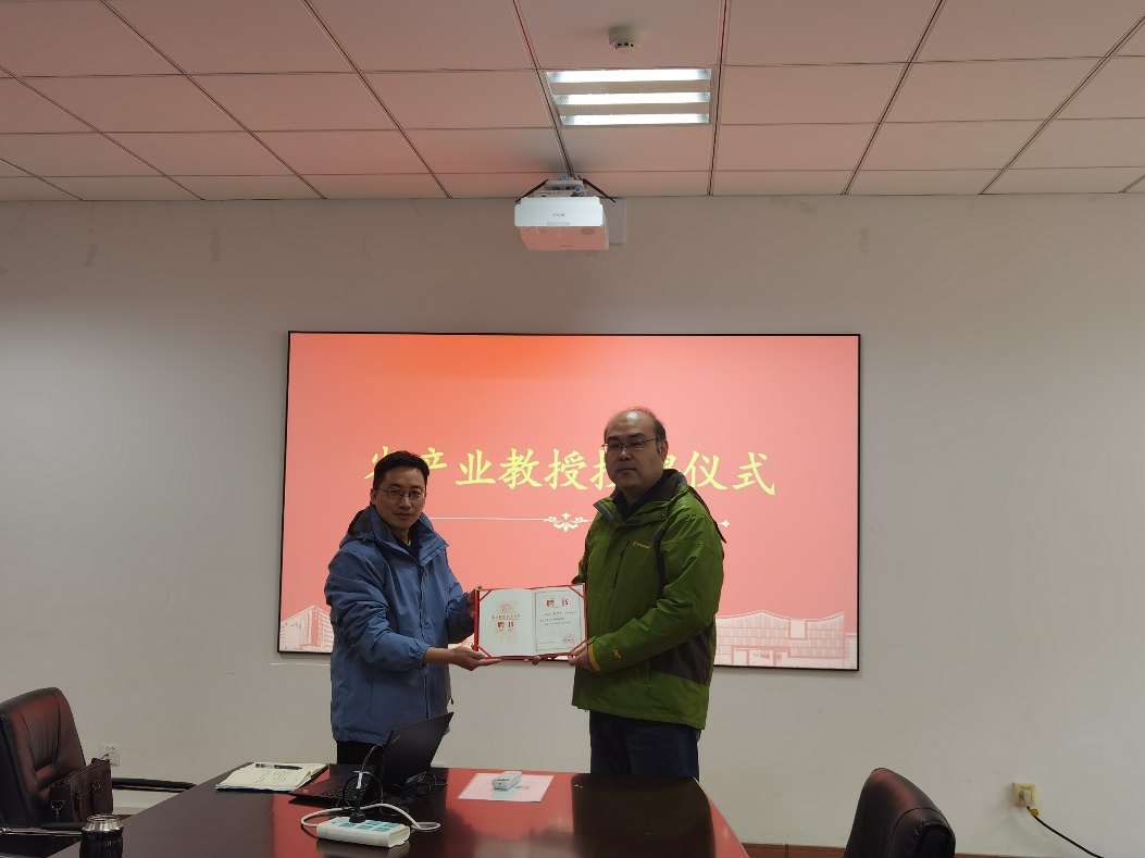 行业特聘教授。副院长张小飞、实践教育中心副主任邱旦峰、学院教师代表张颖等参加活动,仪式由张小飞主持。
