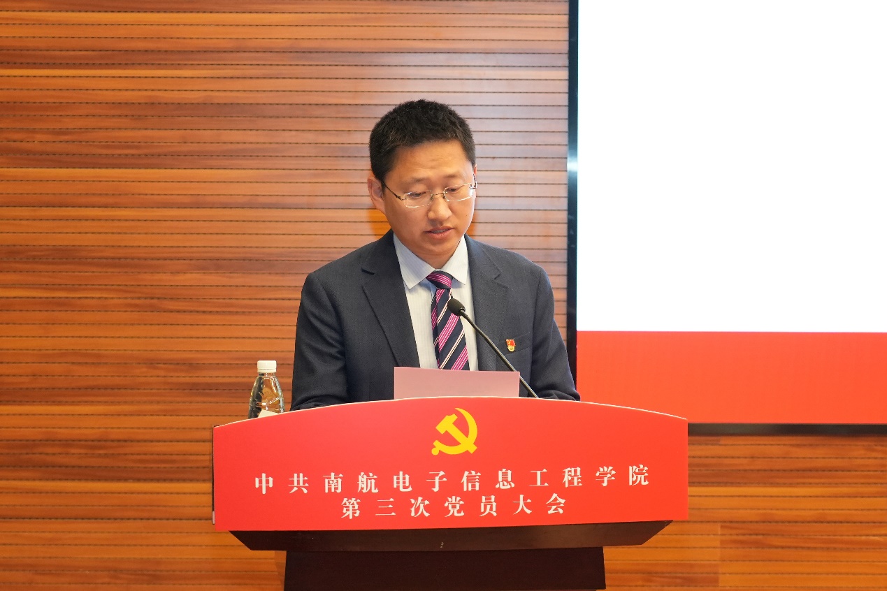 近日,中共南航电子信息工程学院第三次党员大会在将军路校区一号楼四楼报告厅召开。校党委副书记刘宇雷、组织部副部长董羽出席会议,学院近400名师生正式党员参加会议,学院民主党派成员、无党派人士、国家级高层次人才列席了会议,会议由学院党委副书记雷蕾主持。