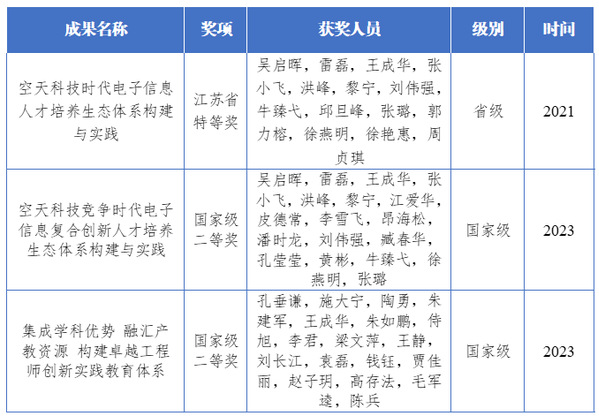 深入推进信息与空天的交叉融合,建设“三航和军工”特色鲜明的国家级一流本科专业,培养空天报国与献身国防的合格建设者和接班人。近年来,在机载雷达引路人贲德院士、全国劳模孙泽洲教授的引领下,涌现出国务院特殊津贴获得者周建江教授、中国产学研合作创新奖获得者吴启晖教授、万人计划教学名师王成华教授等先进典型,潘时龙教授受邀参加习近平总书记召开的科学家座谈会,师德师风建设成效显著;学院学生获团中央“践行社会主义核心价值观先进个人”、省三好学生、省优秀学生干部、优秀共产党员等校级以上荣誉400余人次,获“互联网+”金奖、“挑战杯”特等奖等国家级竞赛荣誉100余人次,教书育人成绩优异;毕业生前往中航工业、航天科工等三航单位,中电科等国防单位以及华为等民营企业就业,比例超过65%。