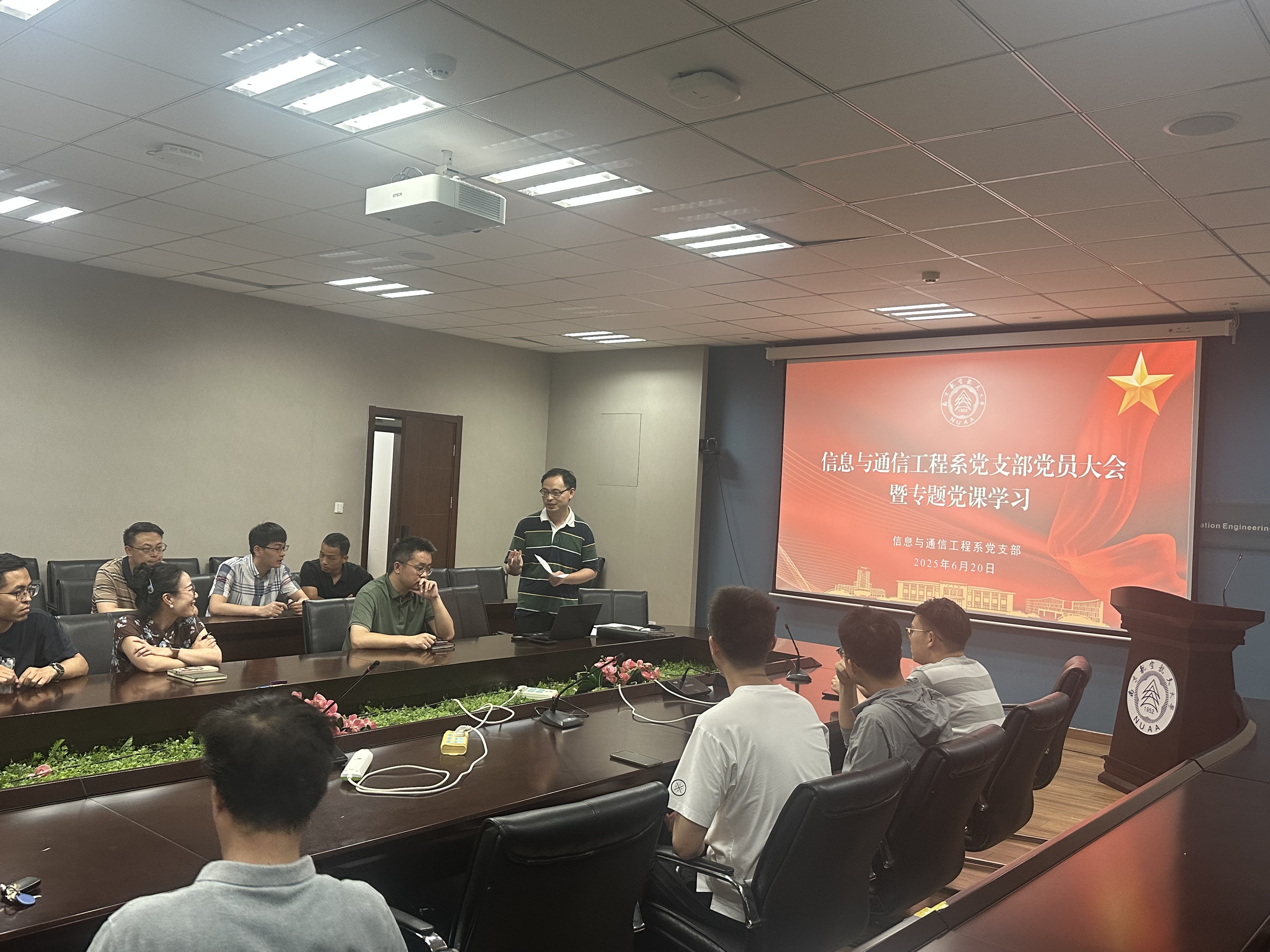 2025年6月20日,中共南京航空航天大学电子信息工程学院信息与通信工程系党支部在电子信息工程学院209会议室召开支部党员大会暨专题党课学习,选举产生新一届支部委员会,并开展主题研讨。会议由上一届党支部书记时晨光同志主持。